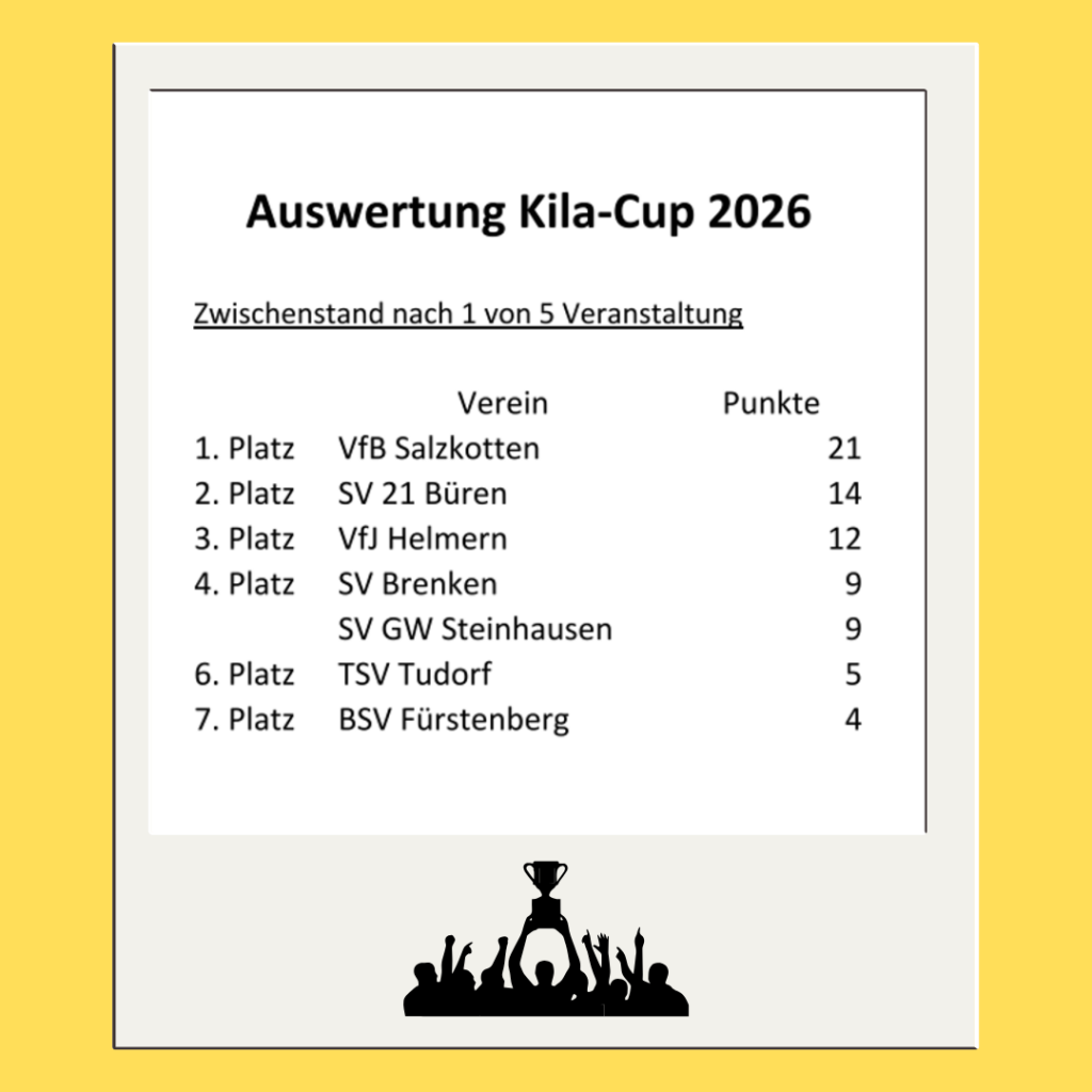 Auch für 2026 plant der Förderverein bereits eine Fortsetzung des Cups— mit ebenso viel Begeisterung und hoffentlich erneut großen Teilnehmerfeldern. Denn der Kila-Cup 2025 hat eindrucksvoll gezeigt, wie wertvoll und lebendig die Nachwuchsarbeit in der Region ist – und welches Potenzial in den jungen Athletinnen und Athleten steckt.